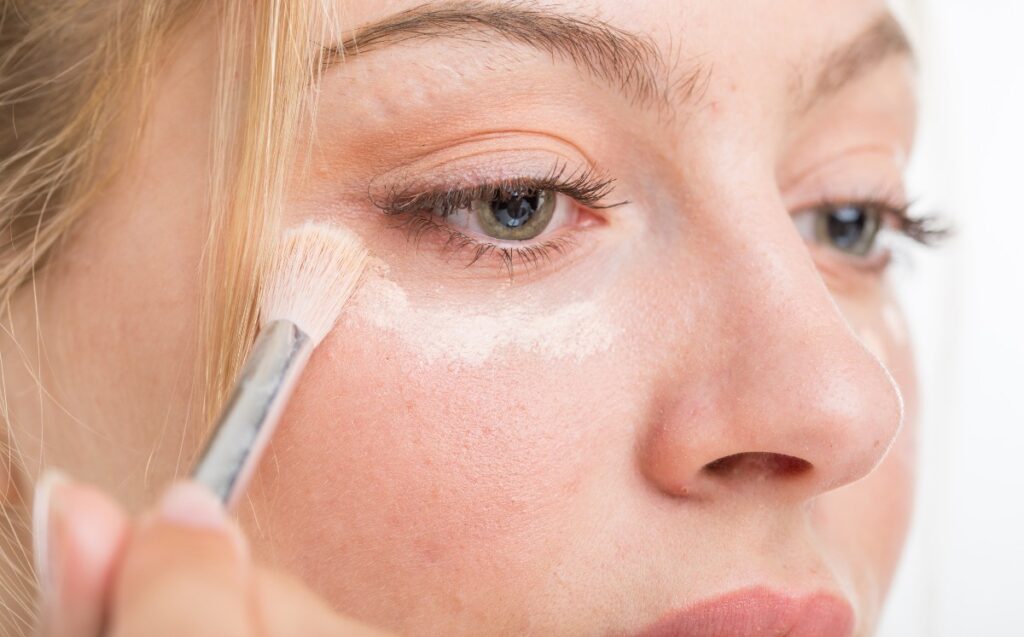 - Aplica una cantidad generosa de polvo translúcido sobre la zona de corrector usando una esponja o brocha.